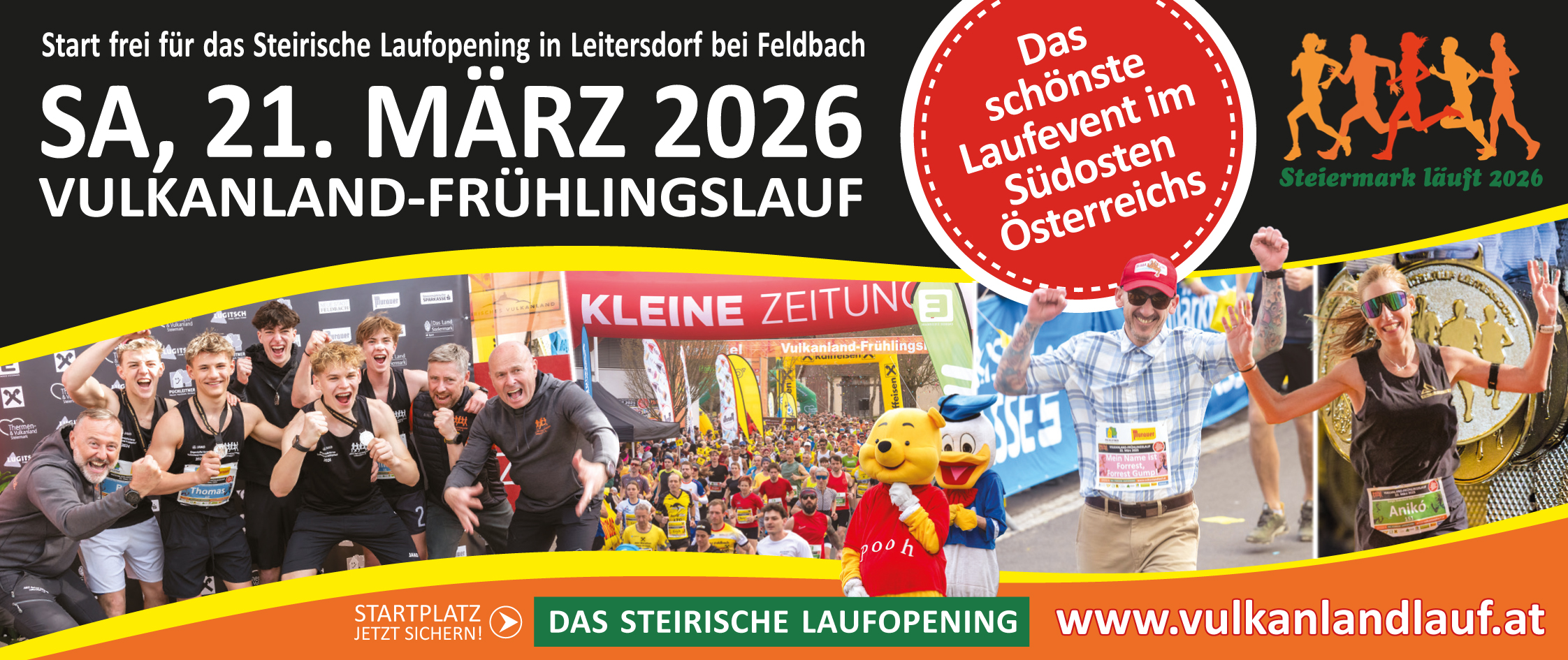 8 km Vulkanland-Frühlingslauf Volkslauf, 4 km Vulkanland-Frühlingslauf Hobbylauf, 4 km Nordic Walking, 21 km Vulkanland-Frühlingslauf Halbmarathon, 1500 km Kinderläufe